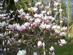 Wer wäre nicht fasziniert von der üppigen, geradezu barocken Pracht blühender Magnolienbäume? Kaum zu glauben, dass Magnolien einer uralten Pflanzenfamilie angehören, deren Entwicklungsbeginn wohl schon über 100 Millionen Jahre zurückliegt. Sie stehen damit am Anfang der stammesgeschichtlichen Entwicklung der Bedecktsamer und sind auch deren Namensgeber (Magnoliopsida). In vielen Gärten findet man lediglich Magnolia x soulangeana, wobei die in alten Villengärten zu bewundernden knorrigen Exemplare zur Blüte ein grandioses Bild abgeben. Daneben findet man höchstens noch Magnolia stellata, Magnolia liliiflora und Sorten davon. Weitere Arten oder deren Hybriden sind leider kaum verbreitet. Das ist schade, denn besonders in letzter Zeit sind viele wunderbare neue Sorten bekannt geworden. Vorwiegend sind dies neuseeländische Züchtungen, die zwar nicht überall, aber zumindest in Spezialbaumschulen (siehe Linkseite) erhältlich sind. Jeder Gärtner in unseren Breiten wartet nach tristem Winter-Grau sehnsüchtig auf die ersten Blüten. Da kommen Magnolien mit ihren spektakulären Blüten gerade recht. Der Vorteil der frühen Blüte ist gleichzeitig ihr größtes Handicap. Jedes Jahr steht deshalb erneut die spannende Frage im Raum: fällt die Blüte diesmal in eine frostfreie Periode? Die Hoffnung stirbt zuletzt! Die Chance Magnolien-Blüte zu sehen erhöht sich allerdings, wenn man verschiedene Sorten und Arten mit unterschiedlicher Blütezeit pflanzt. Unsere Magnolienkollektion deckt einen Blütenzeitraum von April bis Juli ab. Auf die wohl schönste Art, Magnolia campbellii, haben wir bewusst verzichtet. Sie blüht leider besonders früh und auch ihr Holz ist für unser Klima nicht hart genug. Auf den Britischen Inseln findet man hingegen in alten Parks beeindruckende, riesige Exemplare. Manche der neueren Hybriden aus Neuseeland haben im Aussehen, nicht aber in der Empfindlichkeit, viel von Magnolia campbellii geerbt. Sie kommen damit der unbeschreiblichen Eleganz dieser Art schon recht nahe.